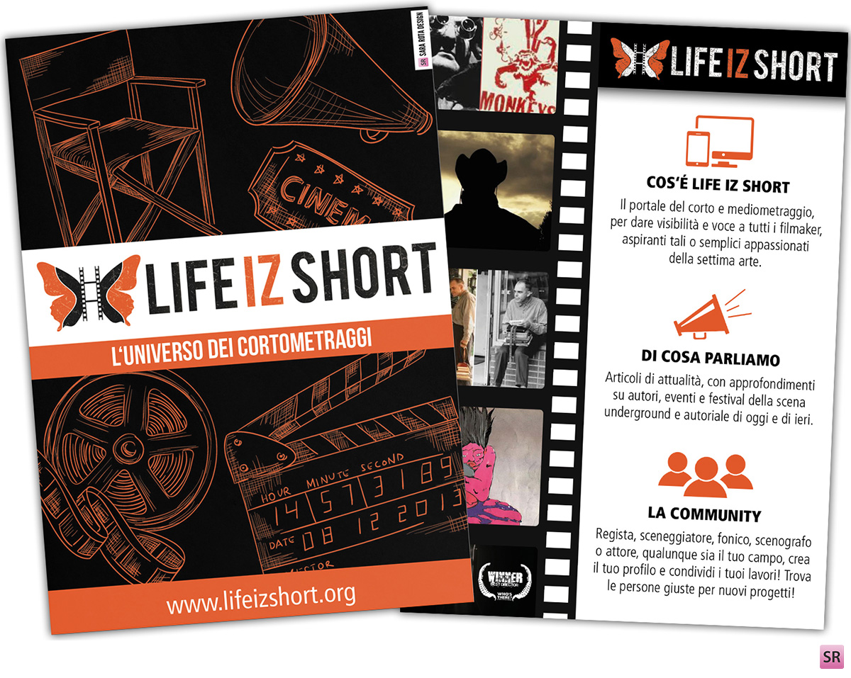 Life iz Short è un portale dedicato al mondo dei cortometraggi. Per questo cliente è stato creato il logo, il biglietto da visita e il flayer promozionale. Concetti chiave sono il tempo nel suo scorrere veloce come la vita di una farfalla, che vive nella pellicola di un cortometraggio.