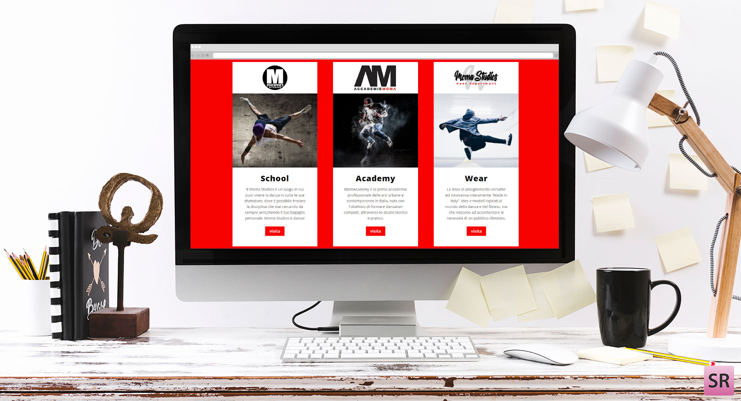 Per Moma Studios è stato studiato un restyling del sito per valorizzare le attività del network. School, Academy, Wear, tre diversi siti per raccontare il mondo Moma!
